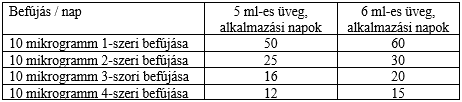 Az 5 és 6 ml-es üvegek megfelelően 50 és 60 adag bevitelét teszik lehetővé.